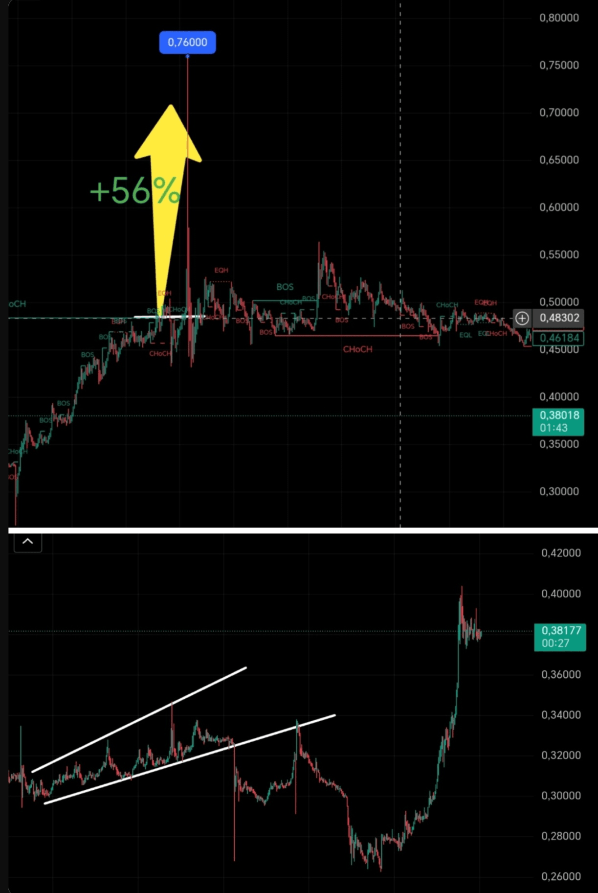 До луны возможно и не доберется, а вот до 0.42💰-0.45💰 возможно🤔