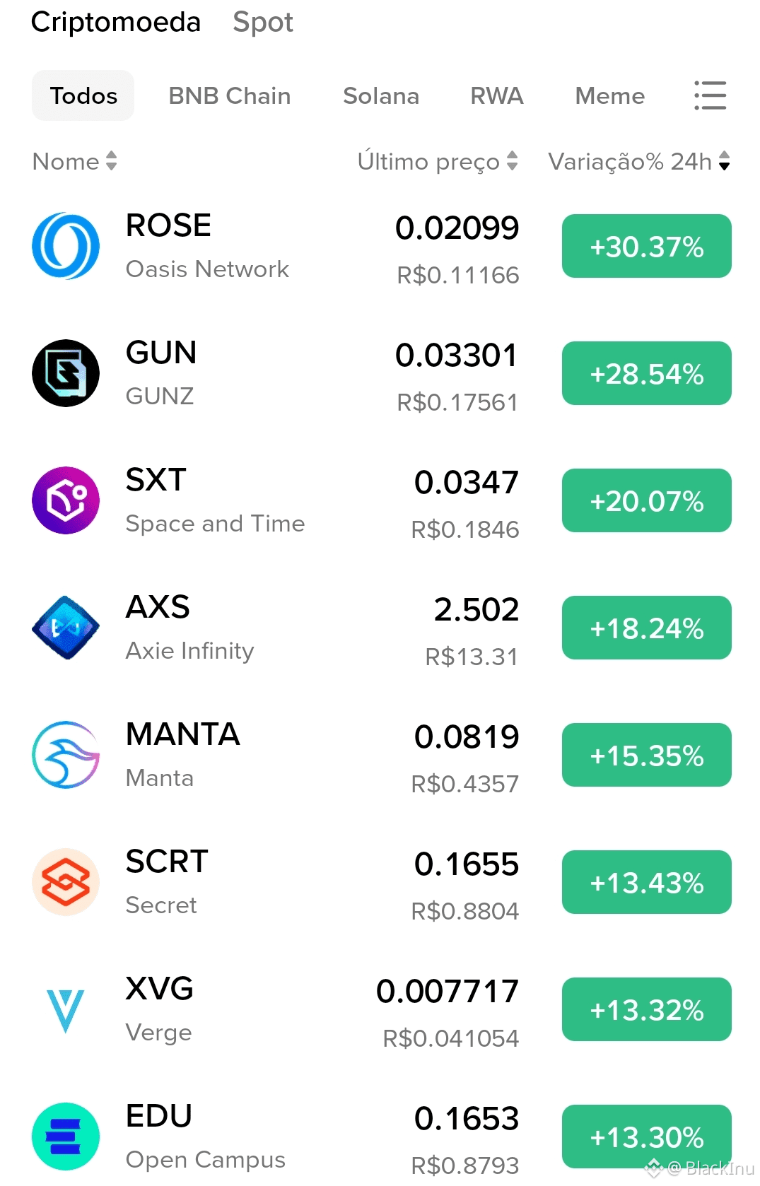 ROSE (+30%), GUN (+28%), SXT (+20%), AXS (+18%), MANTA (+15%), SCRT (+13%), XVG (+13%) e EDU (+13%) sobem juntas por um motivo simples: