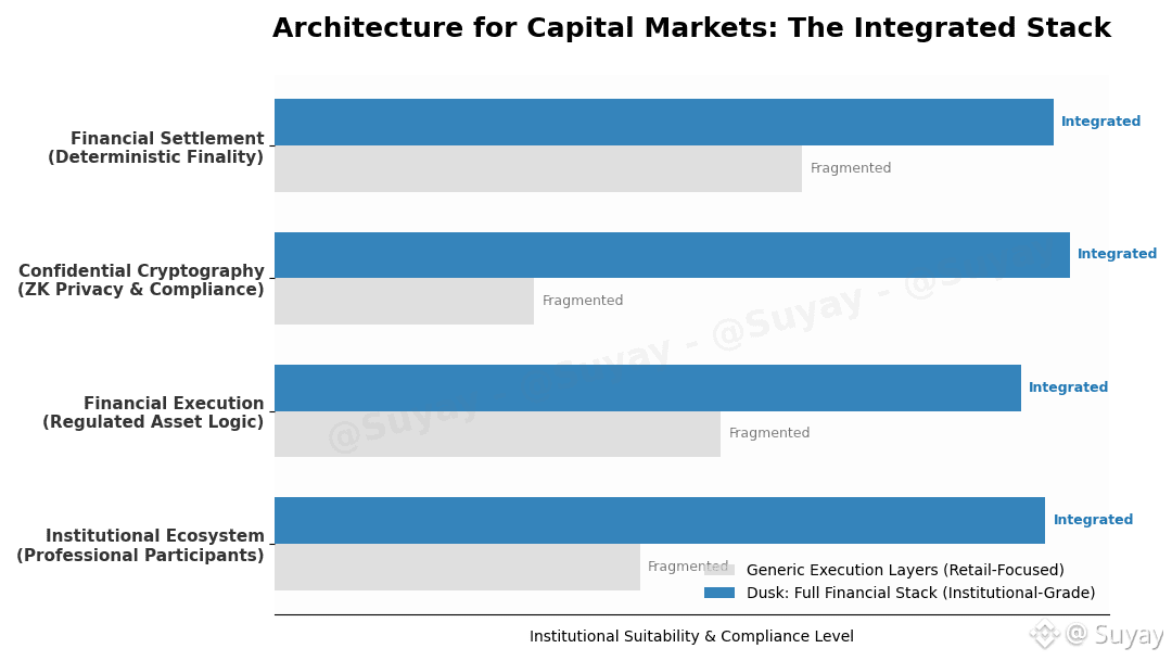 Most blockchains present themselves as execution layers. They focus on transactions, smart contracts, and applications. But financial markets are not just software environments. They are multi-layered systems that combine settlement, compliance, asset logic, confidentiality, and institutional operations. What Dusk Foundation is building is not an app platform. It is a full financial stack.