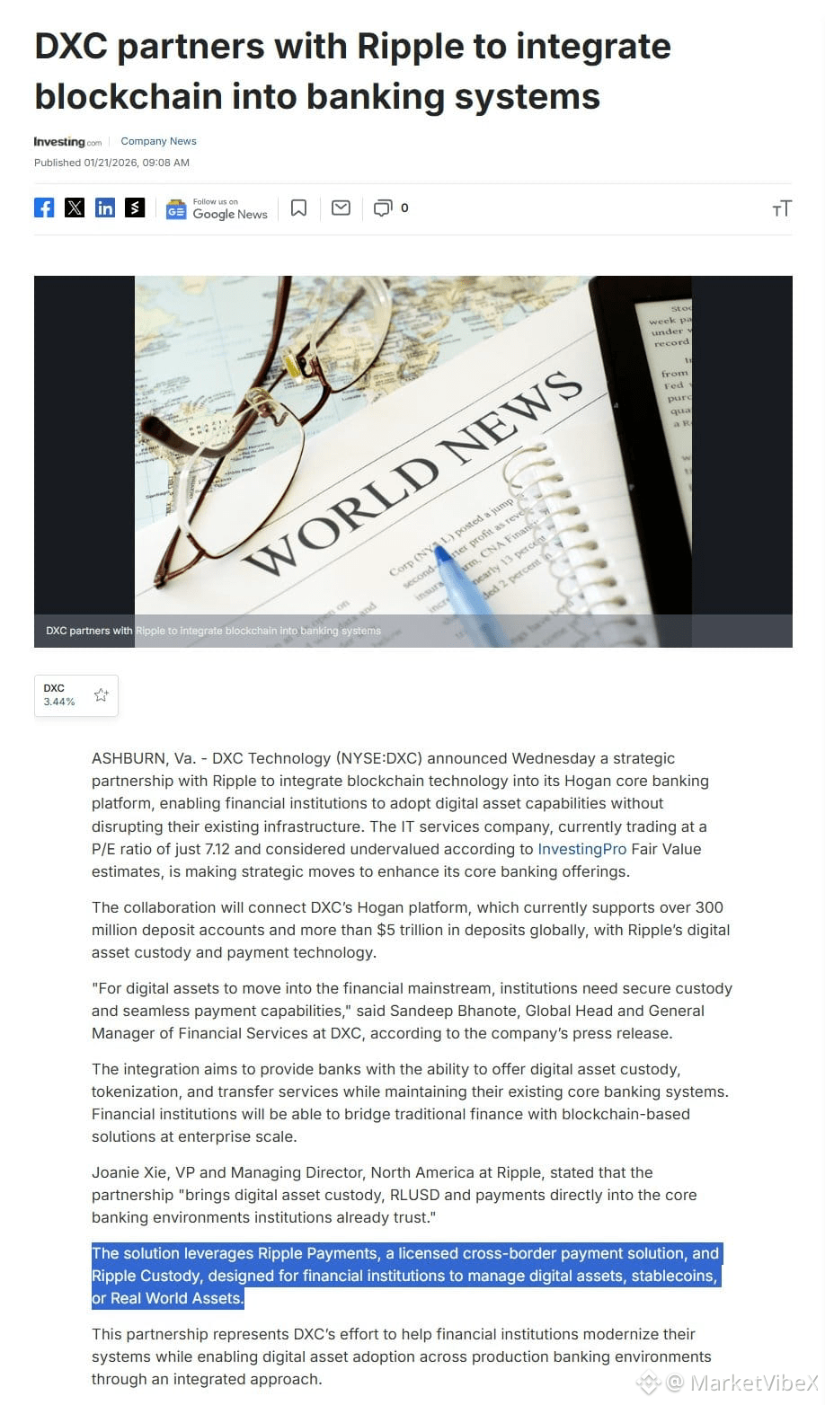 More broadly, the DXC–Ripple partnership highlights how the boundaries between traditional banking and blockchain technology are steadily eroding. As regulatory clarity improves and enterprise-grade solutions mature, digital assets are increasingly being woven into the fabric of mainstream financial operations. What was once experimental is now moving closer to becoming standard infrastructure.