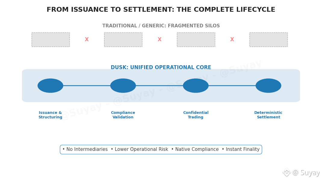 Most blockchain discussions about finance stop at tokenization. They focus on representing assets digitally, enabling transfers, and improving market accessibility. But real financial markets are not defined by tokens. They are defined by structured lifecycles: issuance, compliance validation, distribution, trading, corporate actions, and settlement. This is the gap Dusk Foundation is addressing.