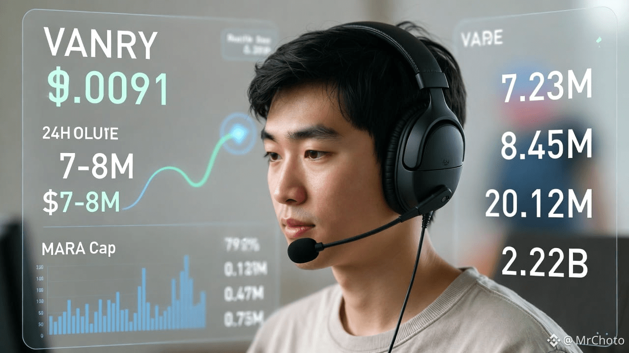 According to today's market data, VANRY is trading at about $0.0091 with a 24-hour volume of about $7–8 million, a market cap of about $20 million, and a circulating supply of about 2.22 billion with a maximum supply of 2.4 billion. That's small cap territory, which is precisely why narratives are less important than execution. You don't win at this size just because you have a weekend trend. If users stick around, you win.