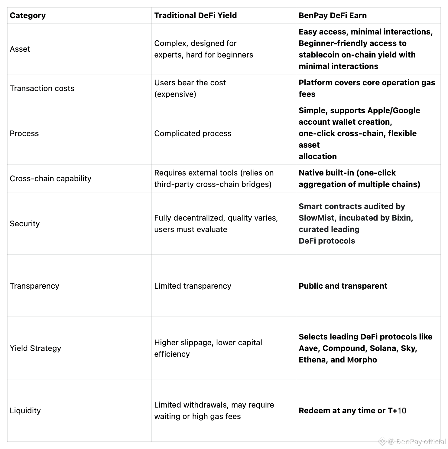 BenPay DeFi Earn vs. Traditional DeFi Yield