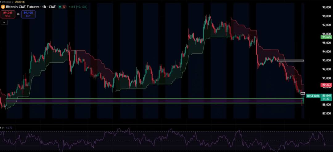 BTC跌破$88000后迅速回弹,CME期货$88000缺口已补。目前的剧本是:站回50日均线,下一步大概率去回补$93000的上方缺口。