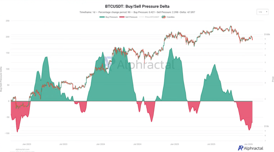 首先,搜索热度显示,大众目前更倾向于黄金白银。BTC的买盘力量疲弱,Alfredo指标显示,尽管有反弹,但底层的真实力量结构依旧偏空,卖方仍握有主导权。