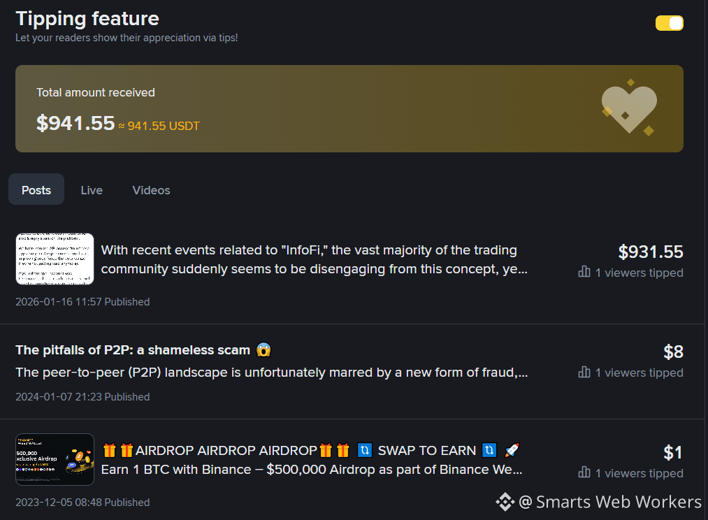 share market insights without being penalized, publish opinions, theses, and educational threads, engage directly with an audience that already understands crypto, host live sessions and discuss strategies in real time,and most importantly, create content where real action actually happens. And it doesn't stop there; you have the opportunity to get paid, which is a real motivator. You have the opportunity to get paid, and you can also pay your audience.