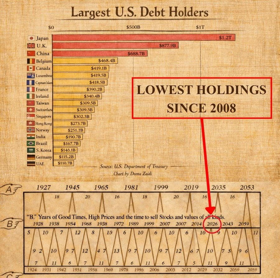 Major countries are slowly reducing their U.S. debt holdings — the lowest levels seen since 2008.