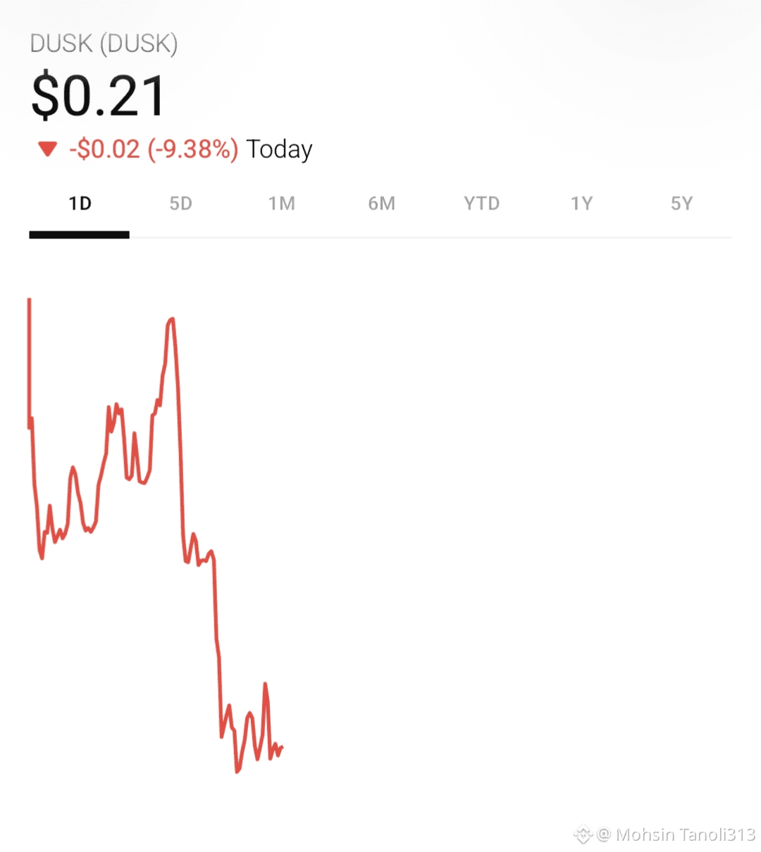 Dusk (DUSK) is currently trading at $0.21 on Binance, with a market cap of $34 million. The price has seen an 8.83% decrease, indicating a potential downfall ¹.