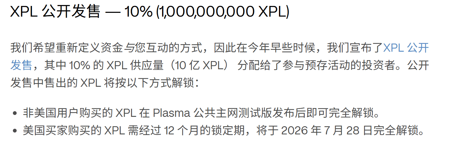 Bitte beachten Sie diesen Punkt: "Die von amerikanischen Käufern gekauften XPL müssen eine Sperrfrist von 12 Monaten durchlaufen und werden am 28. Juli 2026 vollständig entsperrt."