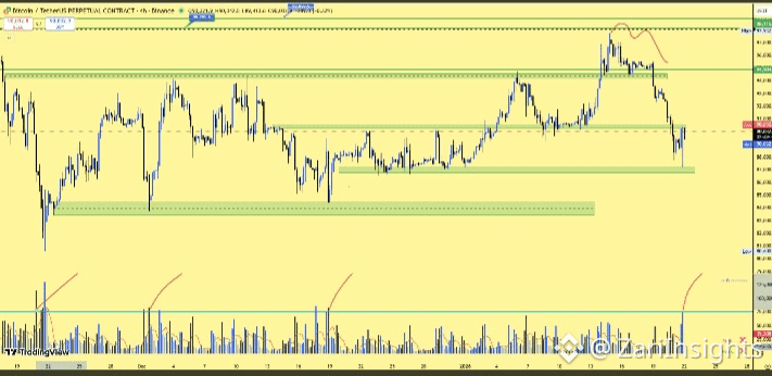 Scenario B (The Rejection): If we keep wicking into $90k and failing, we are heading back to test the $87k demand zone.