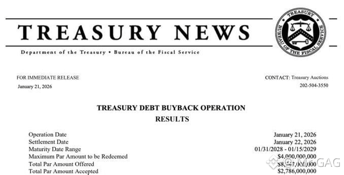 Министерство финансов США снова выкупает свой собственный долг, включая недавнюю покупку облигаций на сумму $2.8 миллиарда, срок погашения которых 2028–2029.