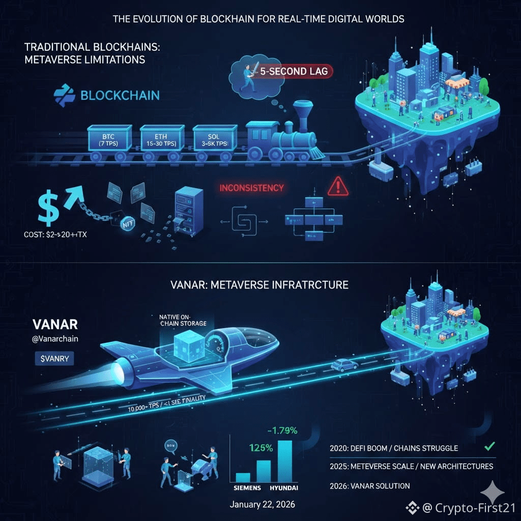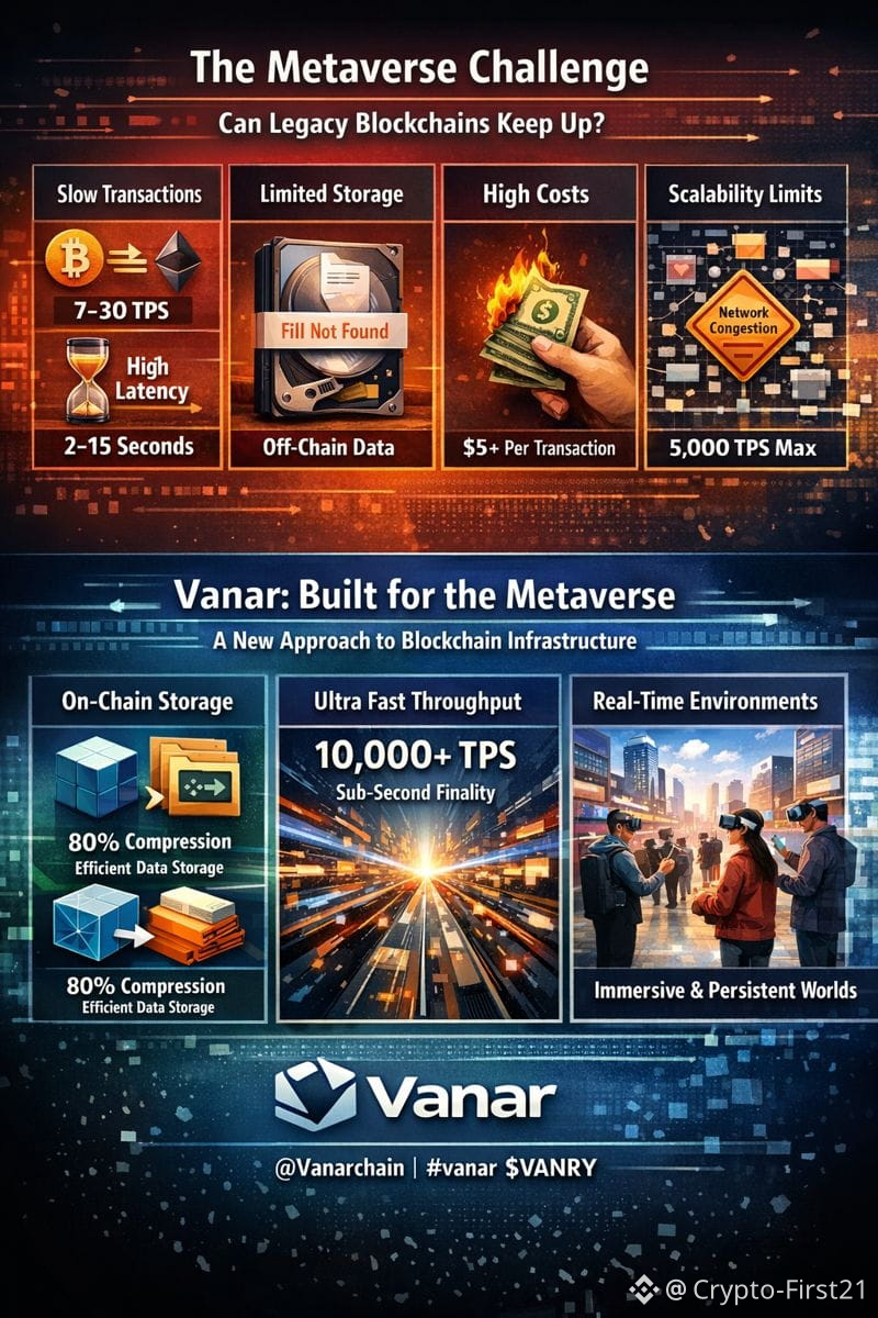 The metaverse promises real-time digital worlds where millions of users move, trade, create, and socialize at the same time. That sounds exciting, but it also creates a technical reality most blockchains were never built for. As someone who has watched blockchain infrastructure evolve since the early days of Bitcoin, I’ve seen the same pattern repeat: new use cases arrive, and old systems start to show their limits.