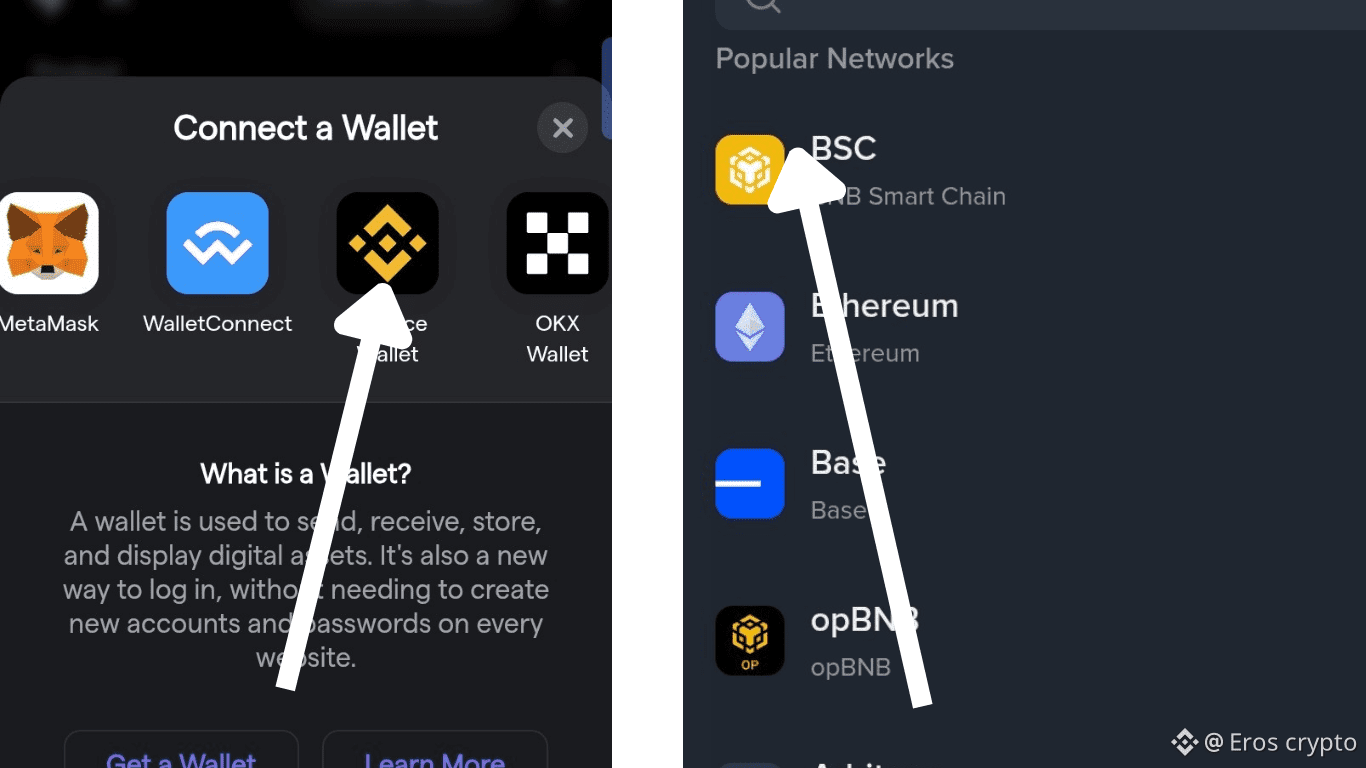 Et choisissez votre réseau , généralement je choisis le #bnb smart chain