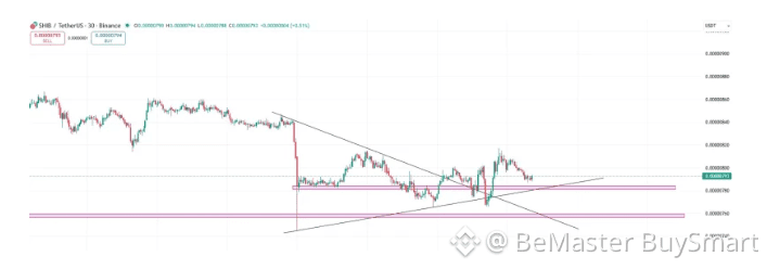 👉 What we're seeing is range-bound movement with intersecting trendlines, showing the market can't decide which direction to go—but the pressure is still tilted downward. Every recovery attempt loses steam faster than the last one, and SHIB can't seem to hold any gains above the former support level.