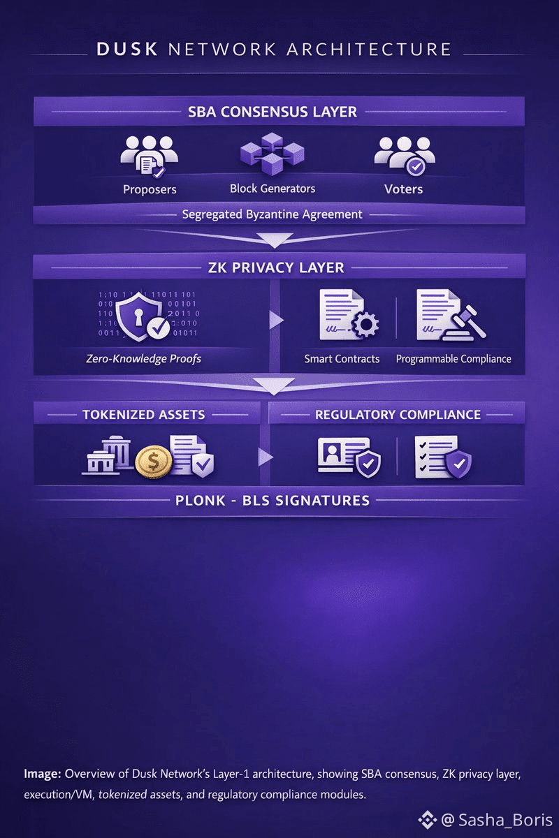 Dusk is a Layer-1 blockchain created specifically for regulated decentralized finance. Its goal is simple but ambitious: allow real financial instruments such as securities, funds, and structured products to exist and move on-chain while respecting legal requirements and protecting sensitive data. Instead of forcing institutions to compromise between compliance and decentralization, Dusk combines both at the protocol level.