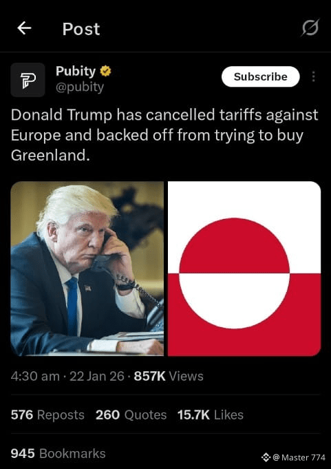$SCRT In a significant shift in tone and strategy, $SLP former U.S. President Donald Trump has stepped back from two of his most contentious positions involving Europe. $XAU According to recent developments, Trump has dropped the threat of imposing new tariffs on European nations and has also abandoned efforts to pursue the purchase of Greenland, a move that previously sparked international controversy.