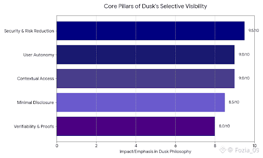 At its core,Dusk’s model puts function over curiosity.Traditional systems often chase openness for its own sake,but that just opens the door to surveillance,leaks,and abuse. Selective visibility flips the script.Only what’s necessary for a task like proving a claim or meeting a requirement gets revealed.The rest stays hidden.This isn’t just practical;it fits with ethical ideas about minimal disclosure and treating people with dignity online.