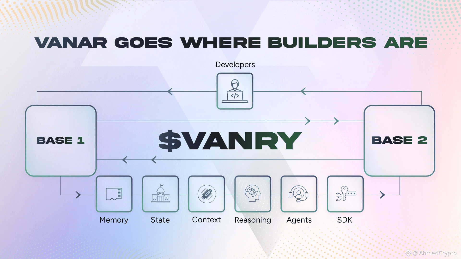 Vanar menghadirkan stack multi-layer yang mencakup Vanar Chain sebagai fondasi jaringan, Neutron untuk penyimpanan memori kontekstual, Kayon sebagai mesin AI on-chain, serta Flows yang mendukung pengembangan aplikasi industri berbasis AI. Pendekatan ini memungkinkan developer membangun dApps yang lebih pintar tanpa harus bergantung pada server off-chain atau middleware eksternal.