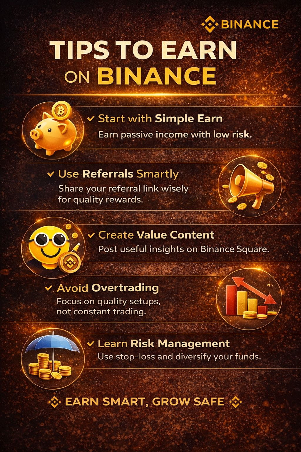 Earning on Binance isn’t about luck — it’s about using the right features the right way.