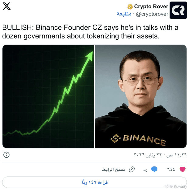 تجري منصة Binance CZ محادثات مع 12 حكومة لترميز الأصول