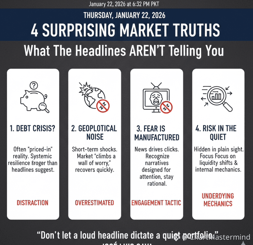 The greatest dangers aren't the ones being debated on TV. Cava suggests that true risk lies in liquidity shifts and internal market mechanics—the quiet technical changes that happen behind the scenes while the public is distracted by the latest political drama. The Bottom Line: Don't let a loud headline dictate a quiet portfolio. Success in today’s market requires the discipline to ignore the "fog" and focus on the underlying mechanics of price action.