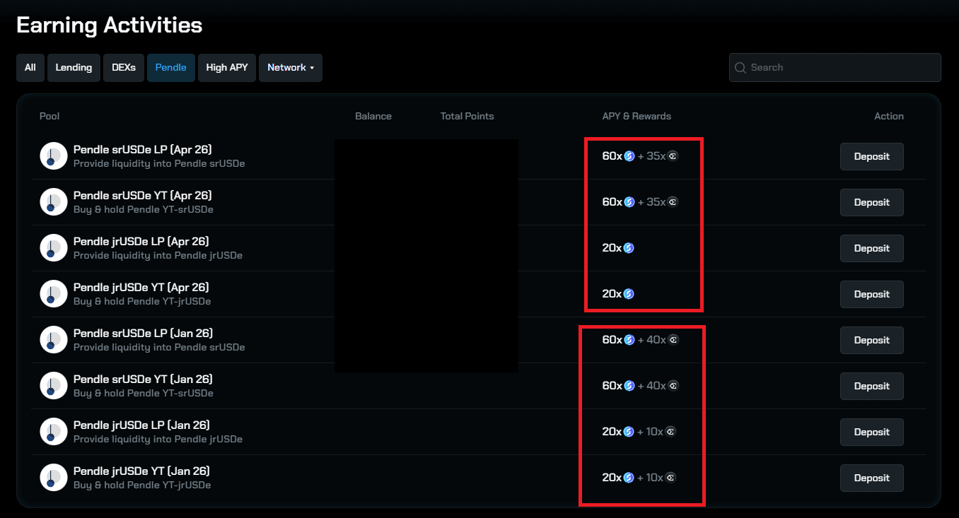 Pendle舊池vs新池,Strata&Ethena積分變化: