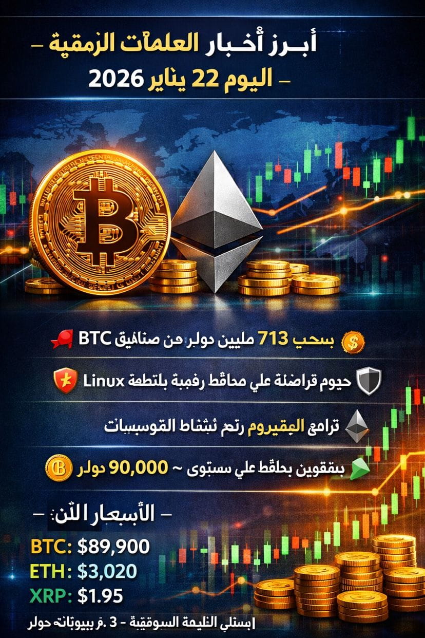 📈 أسعار العملات الرقمية تتأثر بقوة بالأخبار الاقتصادية والسياسية العالمية، خصوصًا قرار إنهاء التهديدات بتعريفات على جرينلاند من قبل الرئيس الأمريكي، الأمر الذي عزّز معنويات المستثمرين في سوق البيتكوين والعملات الرقمية الكبرى.