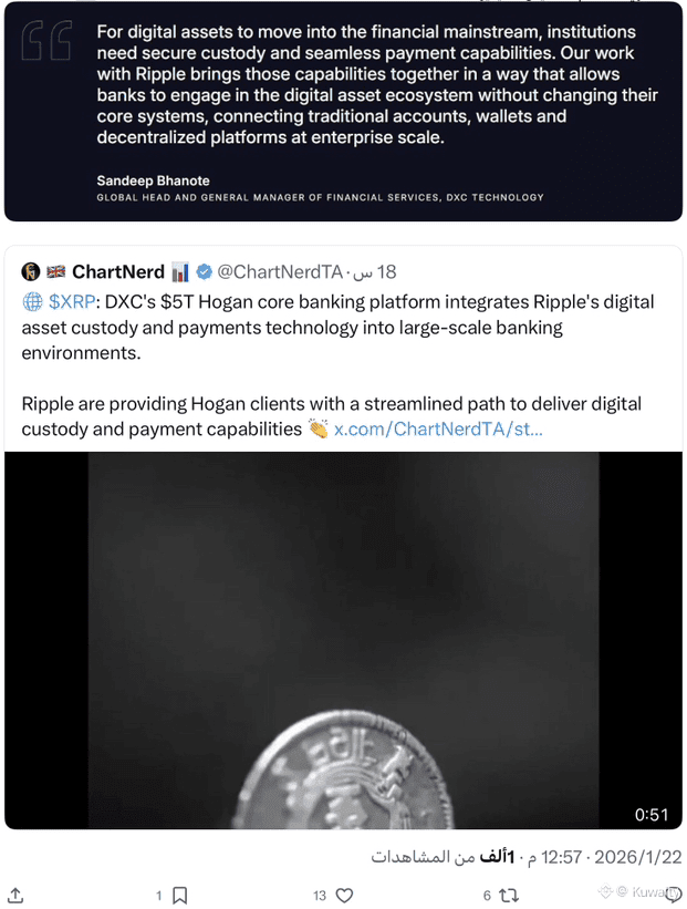 تمثل هذه الشراكة تغييرًا أكثر شمولية. لم يعد بإمكان المصرفيين التساؤل حول اعتماد البلوكشين من عدمه، بل يبحثون عن كيفية تبنيه بطريقة آمنة وصامتة وخالية من المخاطر. توصية DXC تشير إلى أن ريبل مناسبة لهذا النموذج، حيث توفر تغييرًا تدريجيًا وليس جذريًا.