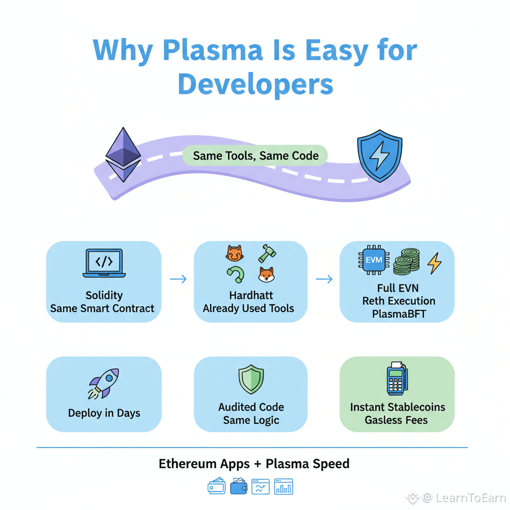 This technical mirror has major strategic consequences. By removing the learning curve entirely, Plasma gains instant access to Ethereum’s vast developer base. Teams do not need to learn new languages, adapt to unfamiliar tooling, or redesign deployment pipelines. Existing, audited codebases can be redeployed quickly, allowing developers to focus on leveraging Plasma’s performance advantages rather than re-engineering their applications. In an environment where developer attention is scarce, this reduction in friction becomes a powerful growth engine.