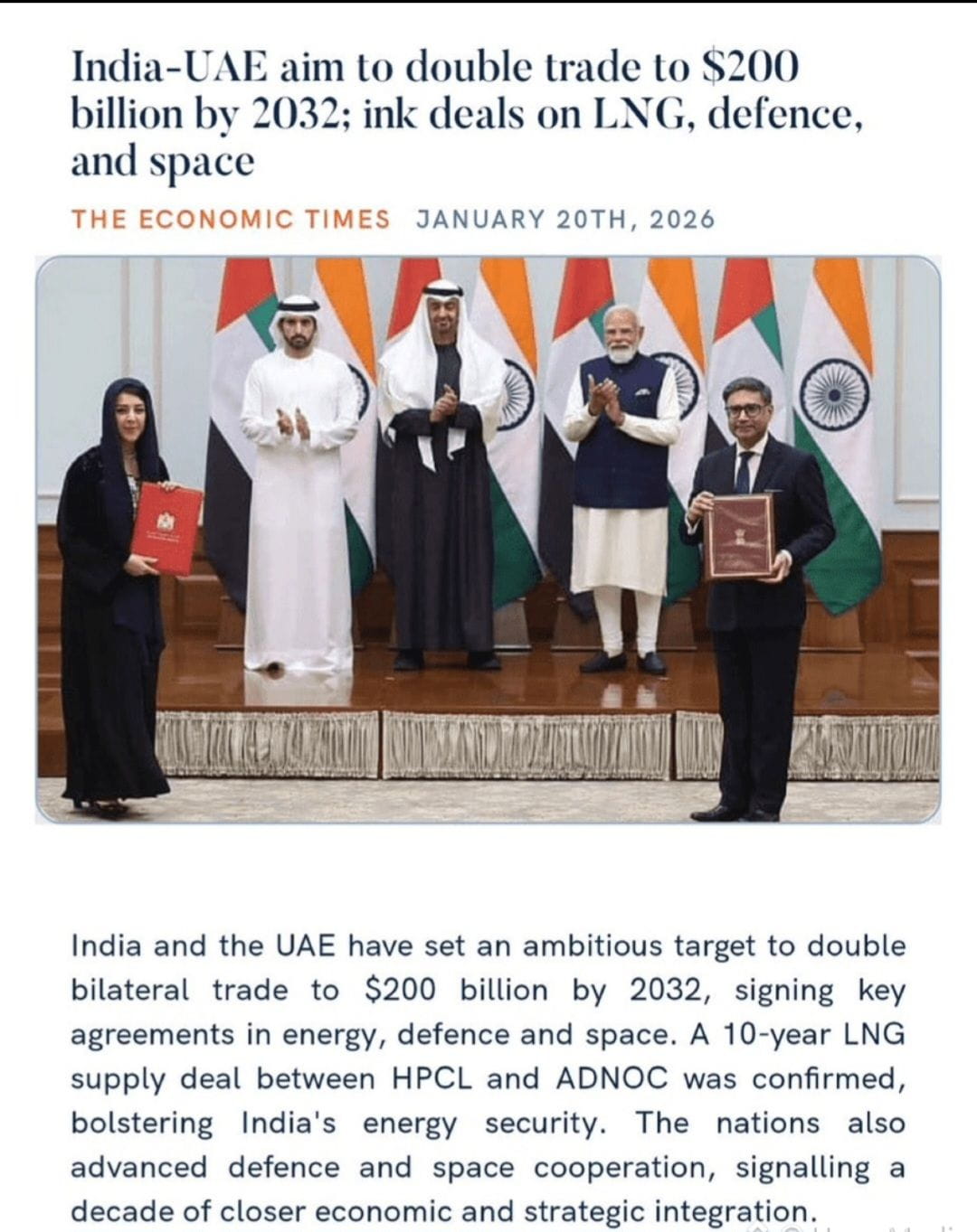 🇮🇳 India & 🇦🇪 UAE aim to double bilateral trade to $200 BILLION by 2032