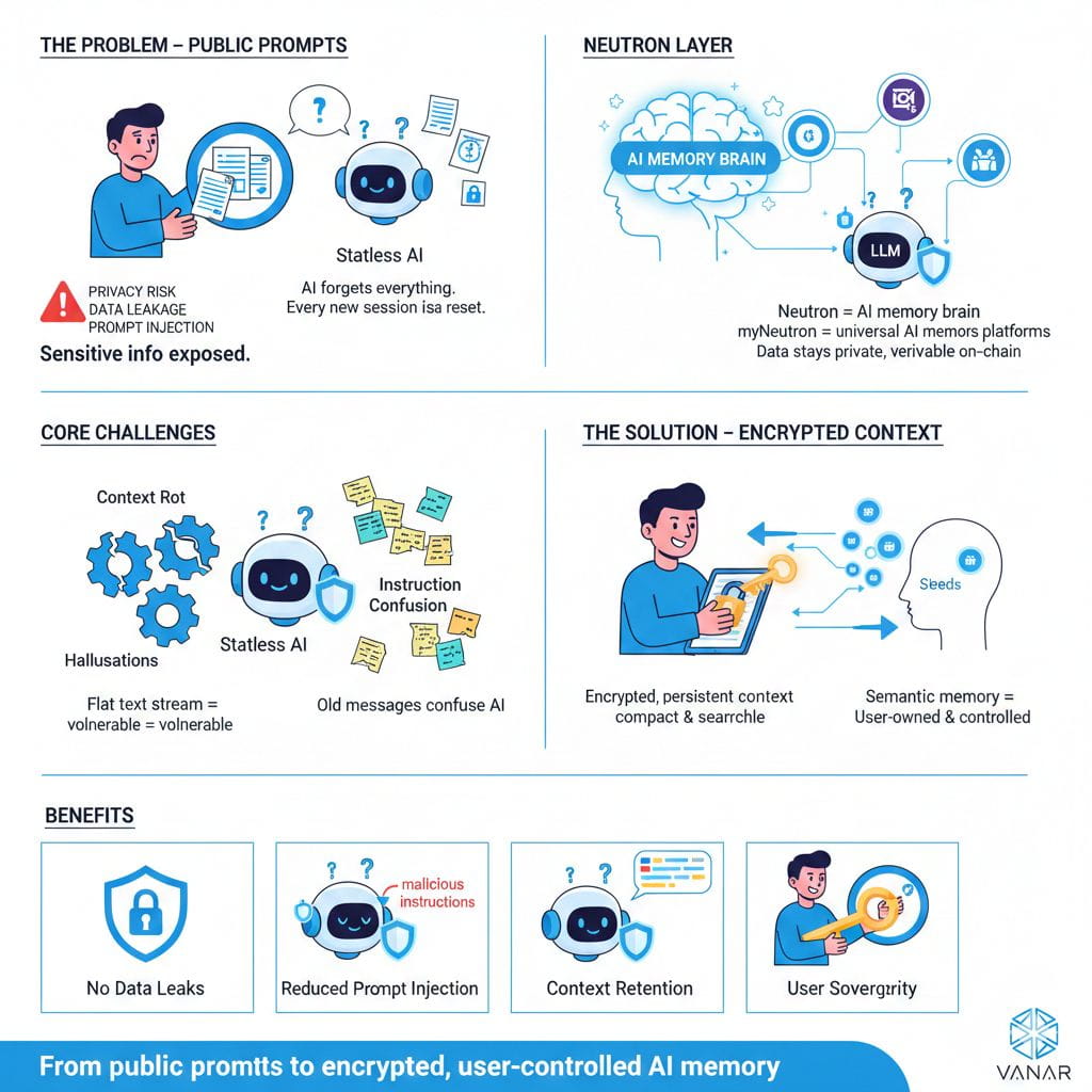 Von meiner Perspektive aus steht die Ära der öffentlichen Aufforderungen vor dem Ende. Ihre Mängel in Bezug auf Sicherheit, Zuverlässigkeit und Benutzerkontrolle sind zu schwerwiegend, um die nächste Generation von Unternehmens- und agentischen KI zu unterstützen. Verschlüsselter Kontext stellt einen Schritt weg von flüchtigen Tricks und hin zu echter Infrastruktur dar. Plattformen wie VANARs Neutron legen das Fundament für KI-Systeme, die nicht nur Fragen beantworten, sondern auch erinnern - sicher, privat und zu den Bedingungen des Benutzers. Das ist die Art von Partnerschaft mit KI, die ich für wertvoll halte.