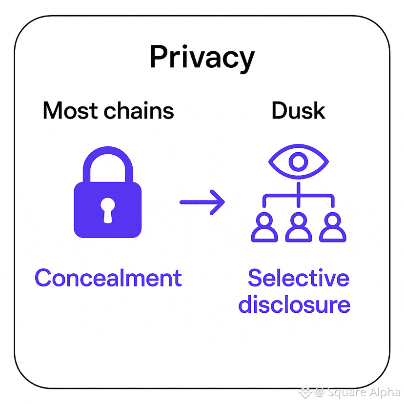 Most chains treat privacy as concealment. Dusk treats it as selective disclosure.