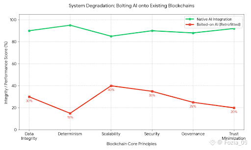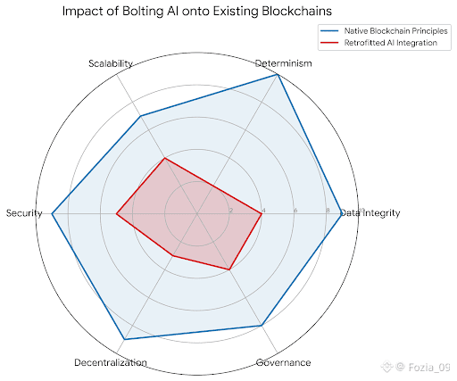 In the end,when you add AI after the fact,a blockchain turns into a hollow execution shell.The chain becomes just a passive ledger,while all the real intelligence happens elsewhere.Trust minimization,composability, sustainability they all take a hit.
