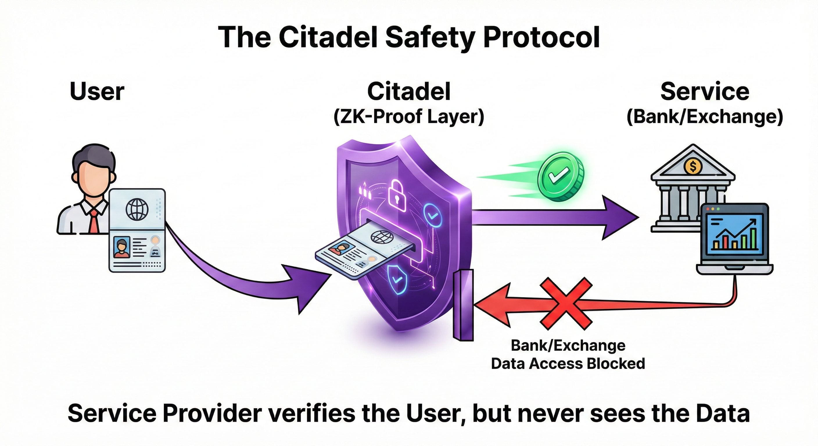 Institutions are terrified of data liability (GDPR in Europe). If they hold user data, they are liable if it gets stolen. Citadel solves this liability for them. It allows them to onboard users without holding the "toxic waste" of personal data.