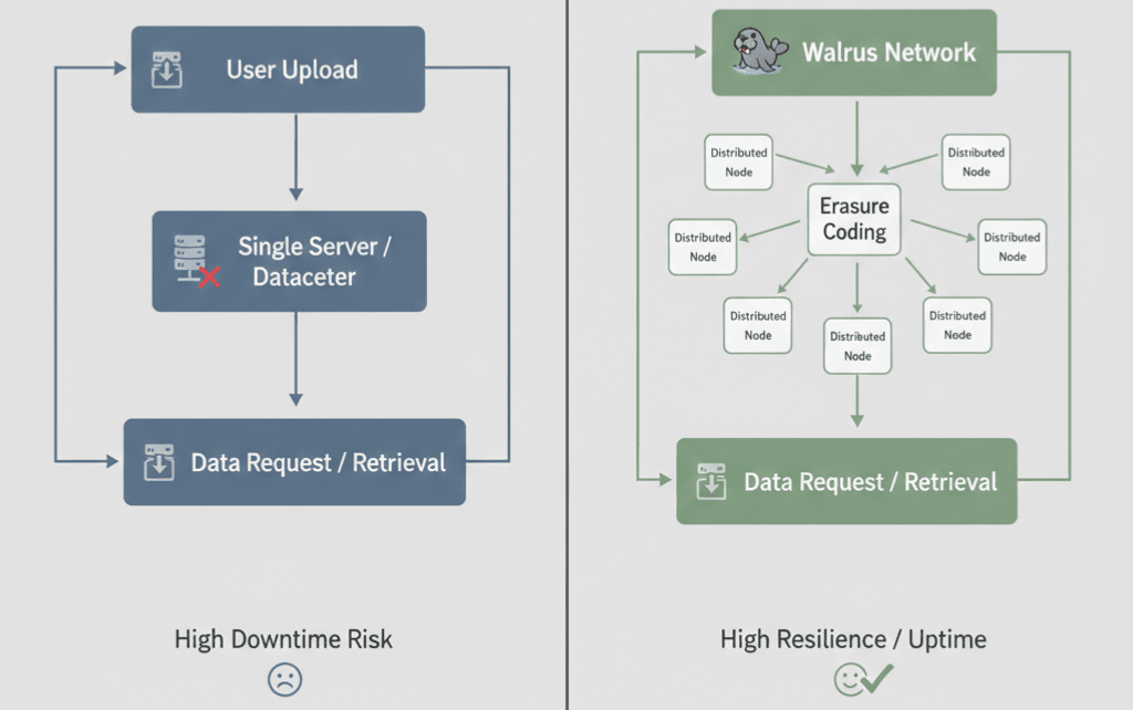 Die erste Mal, dass Sie eine echte On-Chain-App erstellen, erkennen Sie schnell: die Kette ist nicht das Problem. Das Problem ist alles drumherum - Dateien, Benutzerdaten, Berichte, Protokolle, Inhalte. Und in dem Moment, in dem sich diese Daten exponiert anfühlen, hören die Leute auf, Ihre App zu verwenden. Das ist die Lücke, die Walrus zu schließen versucht. Walrus ist dezentrale Speicherung, die für große Dateien entwickelt wurde. Es verteilt Daten über viele Knoten, sodass Apps nicht von einem Server abhängig sind. Aber Walrus ist in einer Sache ehrlich: standardmäßig ist der Speicher öffentlich. Wenn Sie Privatsphäre möchten, stellen Sie nicht vor - es muss entworfen werden. Das ist, wo Seal ins Spiel kommt.