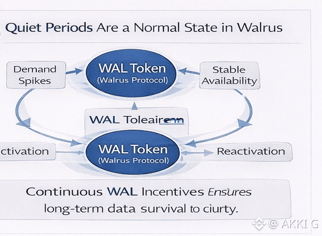 Many systems assume that relevance comes from constant activity. When usage drops, incentives weaken, participants leave, and infrastructure quietly degrades. Walrus is designed with the opposite assumption. It expects long quiet periods and treats them as a normal operating condition rather than a failure state.
