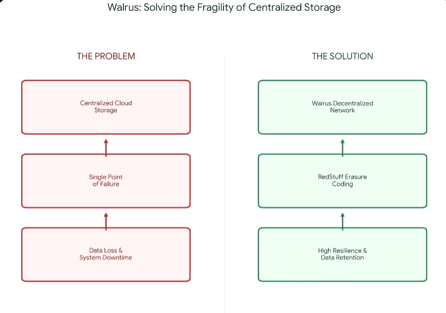 Haben Sie schon einmal Daten in der Cloud verloren? Dieses stille Risiko – der überraschende Ausfall, die Änderung der Richtlinien oder die steigende Rechnung – lehrt Sie, dass Speicherung nicht langweilig ist. Sie ist fragil. Deshalb gibt es Walrus. Walrus ist dezentrale Speicherung für große Dateien – Bilder, Videos, KI-Datensätze – so gebaut, dass Apps nicht auf ein Unternehmen angewiesen sind. Es zerlegt Dateien in Stücke, verteilt sie über viele Knoten und kann sie sogar rekonstruieren, wenn Teile offline gehen. Sui koordiniert Speicheraktionen on-chain, wodurch Zuverlässigkeit überprüfbar und nicht nur versprochen wird. Im Gegensatz zu alten dezentralen Netzwerken verwendet Walrus Fehlerkorrektur anstelle von vollständiger Replikation