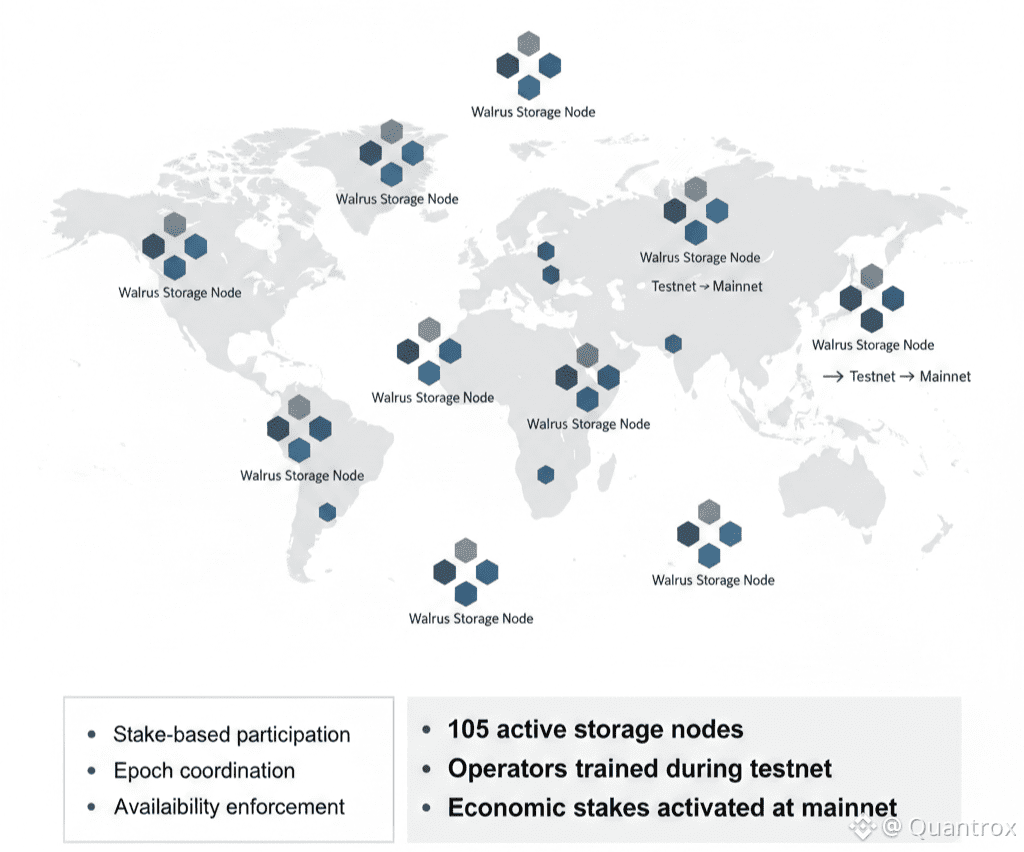 The 105 storage nodes running Walrus today aren't random new operators. Many participated in testnet. They learned the operational requirements, debugged their infrastructure, understood the economics before WAL tokens had real value. That continuity matters. These aren't hobby operators hoping for quick returns. They're committed participants who made it through testing.