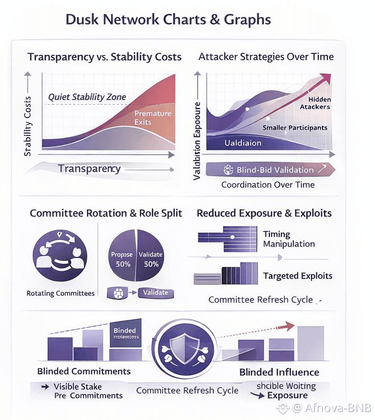 A common assumption in decentralized finance is that transparent validators create accountability. In practice, the opposite often happens. When identities, stakes, and voting tendencies are visible ahead of time, attackers don’t need to defeat cryptography they just wait. Observation and timing become weapons. Over time, this favors actors who can absorb temporary losses while coordinating quietly elsewhere. Smaller participants leave. Centralization grows without ever announcing itself.