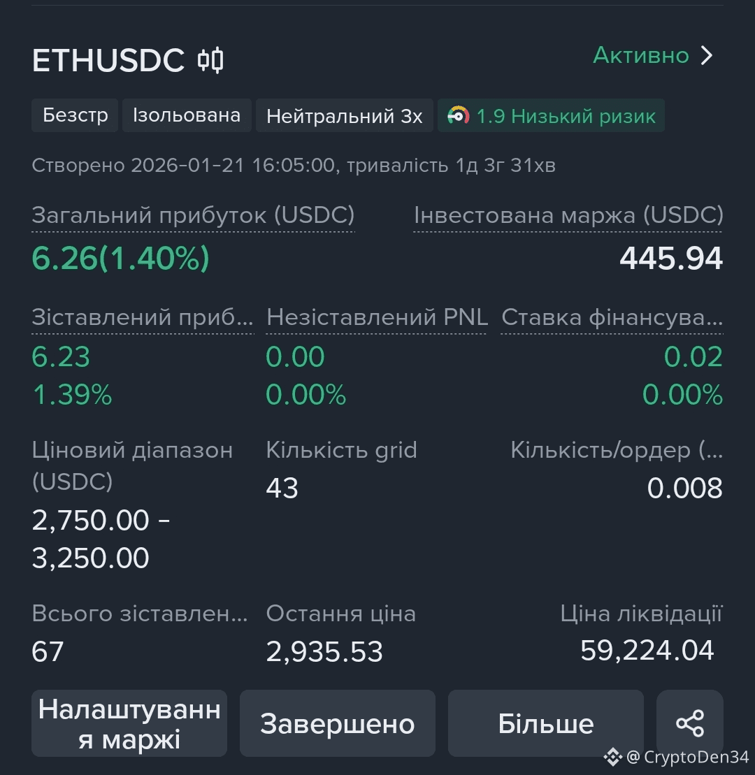 Ethereum is perfect for safe accumulation. The bot executes dozens of trades within the range while the price is ranging.