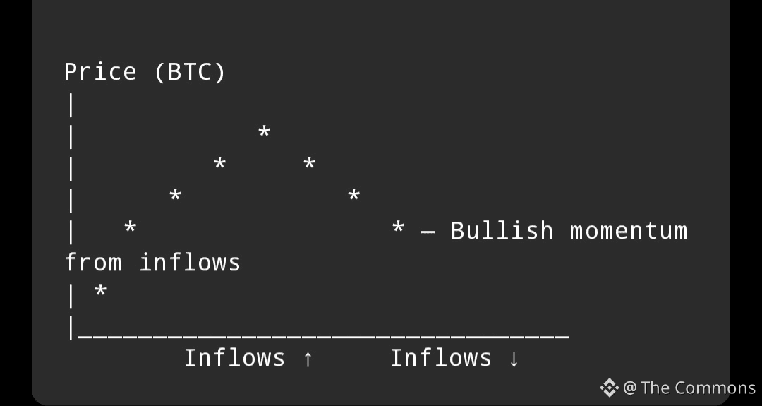 🔹 When ETF inflows increase, institutions are adding exposure — often during price dips.
