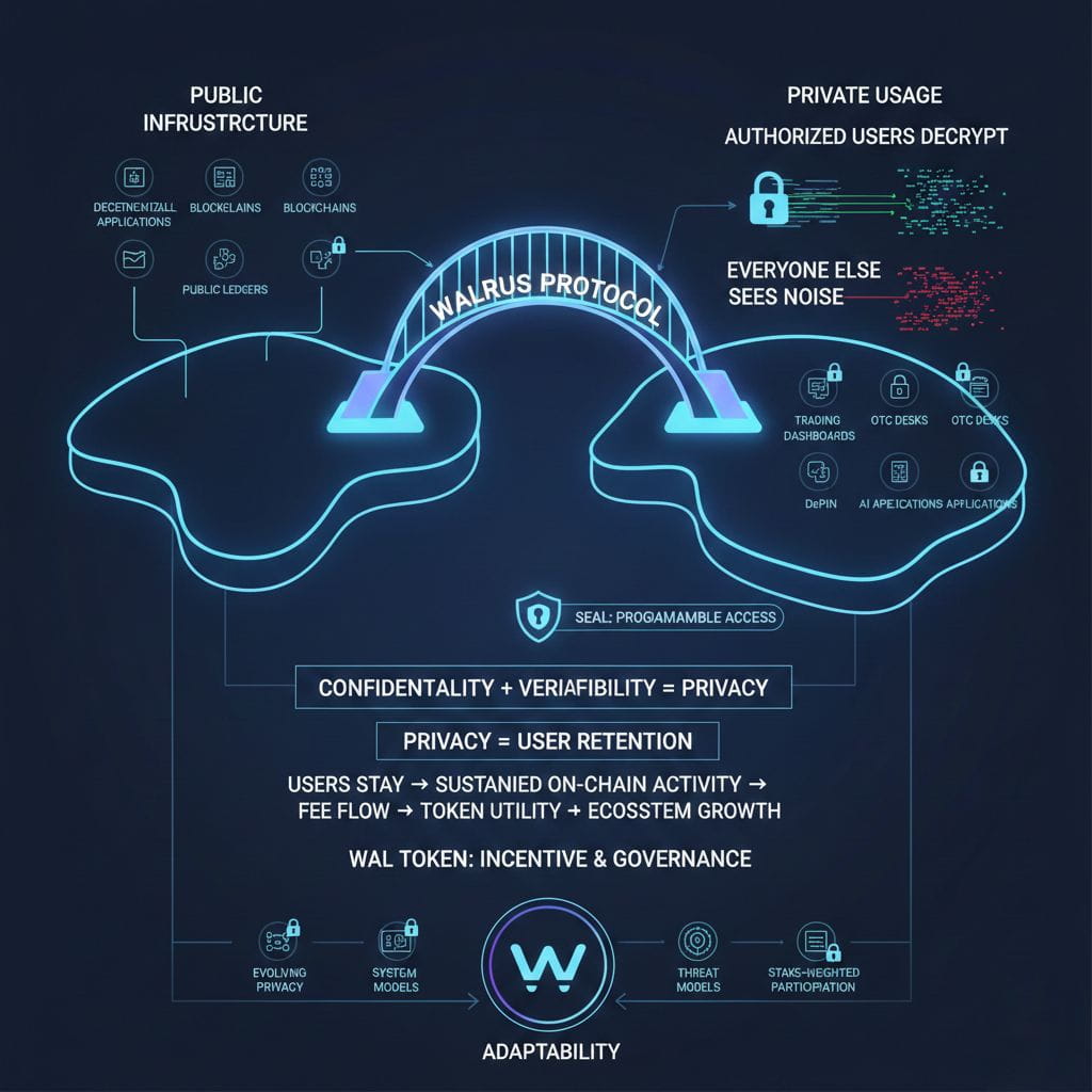 Walrus’ decision to support programmable access control through Seal isn’t just an ethical stance. It’s a survival one. Applications that can’t protect user data struggle to keep users. Applications that can’t keep users don’t generate sustained on-chain activity. And without sustained activity, there’s no durable fee flow, no real token utility, no ecosystem gravity.