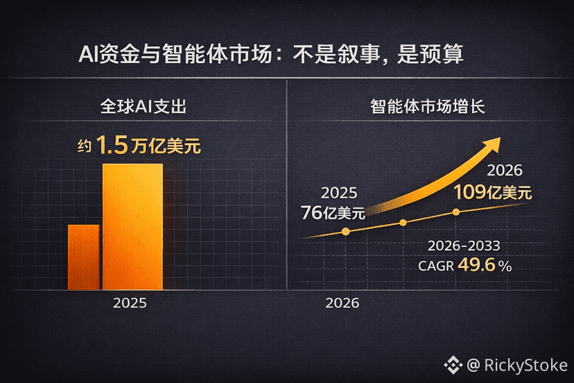再配合现在整个行业的趋势,就更清楚了:AI 的预算规模已经不是“趋势讨论”,而是“万亿美元级别的钱已经砸下去”。智能体市场也在高速扩张,而游戏、娱乐这种最容易触达大众的入口,本身就有几十亿级的用户体量。