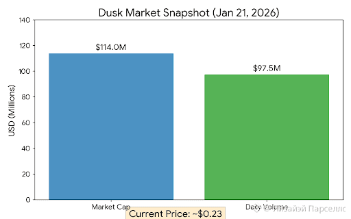 Only after that does market interest matter. Right now, the market is watching. Around January 21, 2026, DUSK traded near $0.23, with market cap roughly $110M–$118M and daily volume around $95M–$100M. That’s real liquidity. But volume doesn’t equal adoption. Sometimes it’s just narrative rotation. The real test is whether usage keeps growing after attention fades.