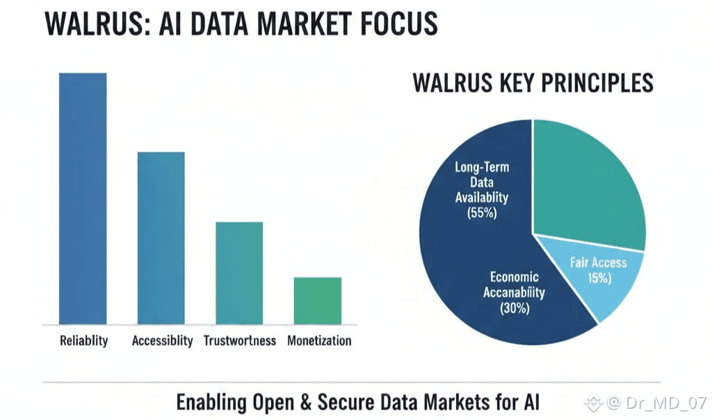Walrus (WAL) is building more than a storage network. It is creating the conditions for open and secure data markets that AI systems depend on. By combining decentralized storage, strong verification, and economic incentives, Walrus addresses real problems faced by AI developers and data providers today.