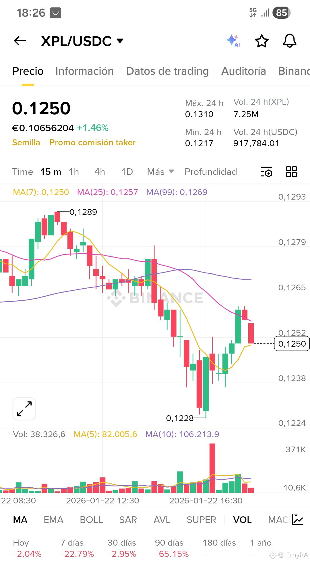 Si uno mira el gráfico de XPL sin prejuicios, la sensación no es de caos, sino de tensión contenida. No está explotando, pero tampoco está cayendo. Está como en ese momento en el que el mercado parece preguntarse: “¿vale la pena apostar más por esta moneda o no?”.