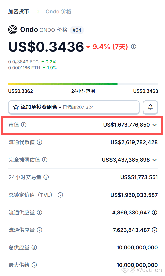 顶级梯队:Ondo Finance以16.6亿美元市值遥遥领先,成为市场公认的龙头
