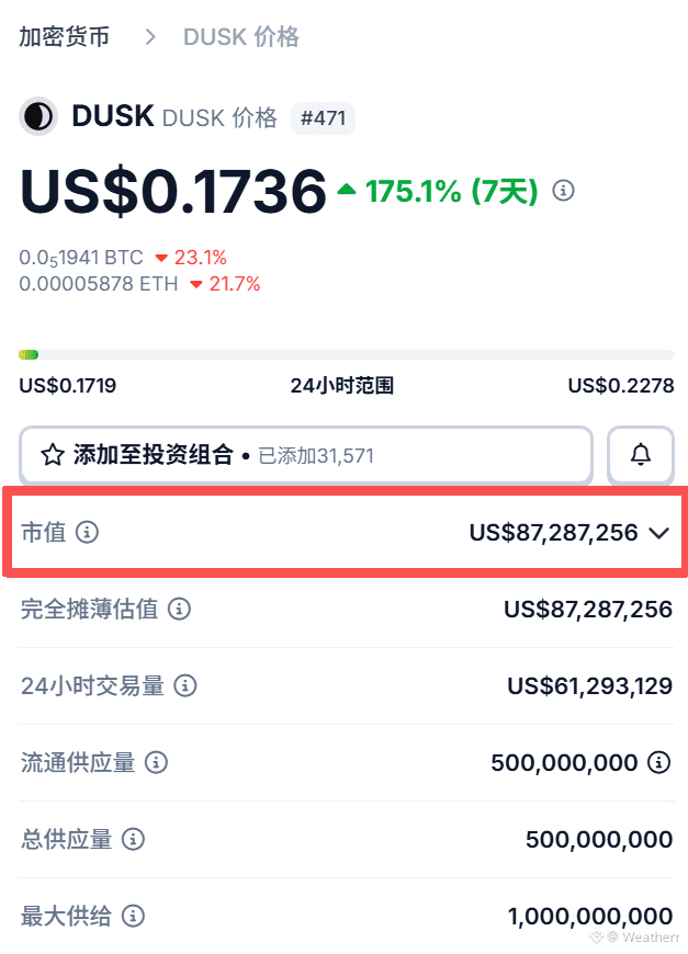 潜力标的:Dusk Foudation当前市值仅8800万美元,处于明显低估状态