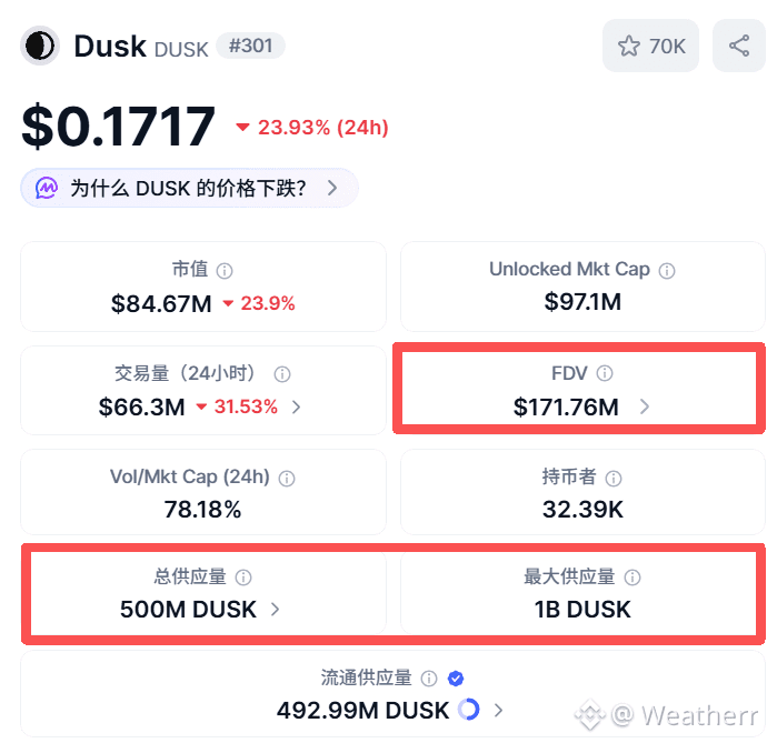 从投资角度看,Dusk目前1.7多亿美元的完全稀释估值(FDV)在RWA赛道中并不算高。相比一些已经涨了很多的同类项目,Dusk还处于相对早期的阶段,但它的经济模型设计却更加完善和可持续。