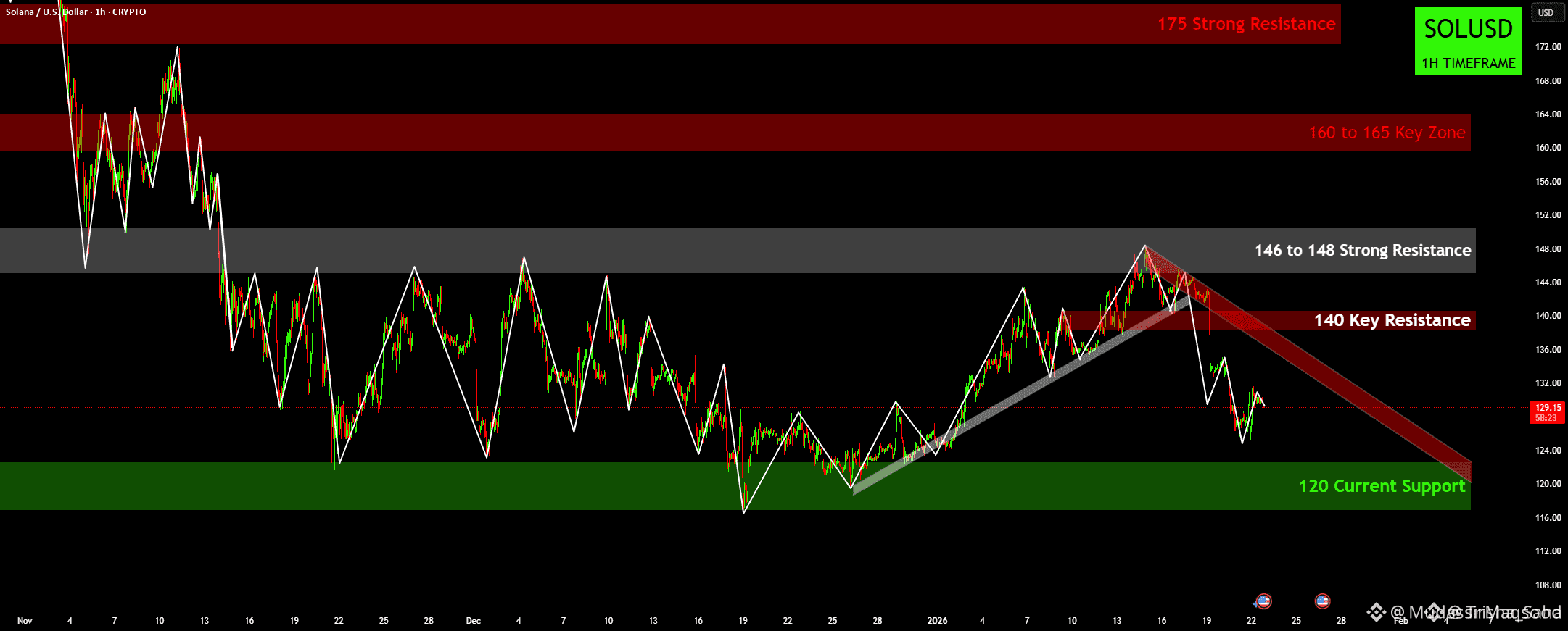 Primary support is established at the $120 level, which serves as a major structural floor to pre-vent further downside toward the $110 region.